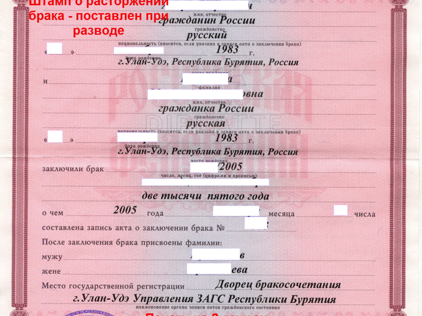 Свидетельство ЗАГС о разводе